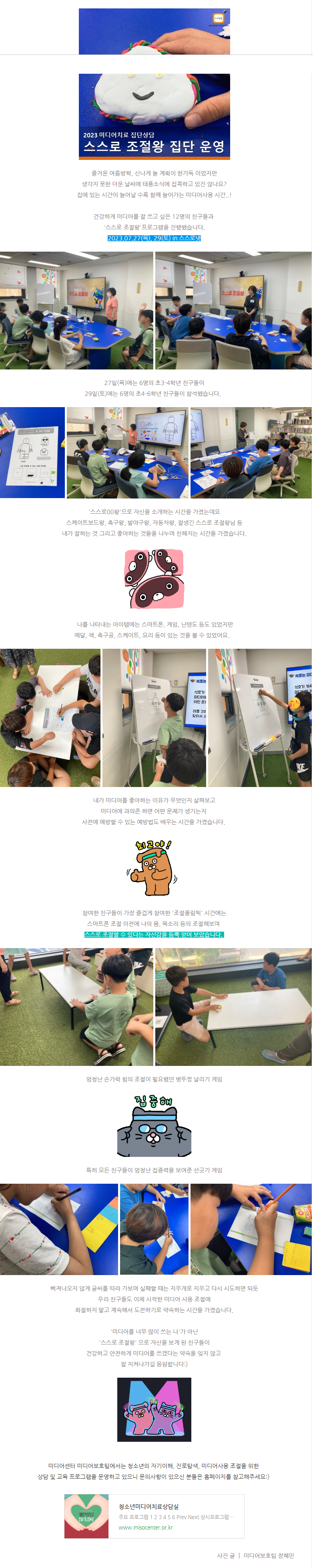 [미디어보호팀] 미디어 사용 조절력 향상 '스스로 조절왕' 프로그램 운영