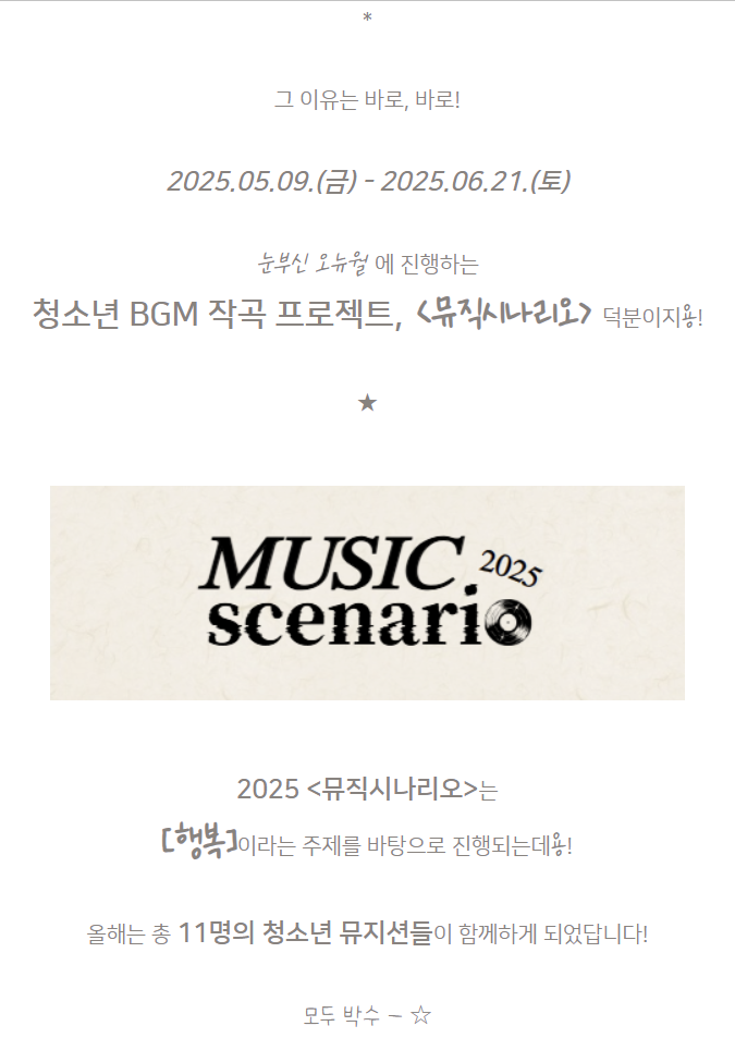 2025 청소년 BGM 작곡 프로젝트 <뮤직시나리오> - 1회기 : Music is my life ★